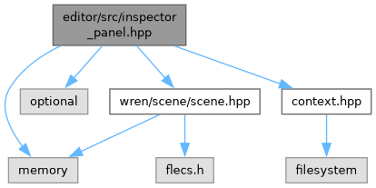| void | render_inspector_panel (const editor::Context &ctx, const std::shared_ptr< wren::scene::Scene > &scene, const std::optional< flecs::entity > &selected_entity) |